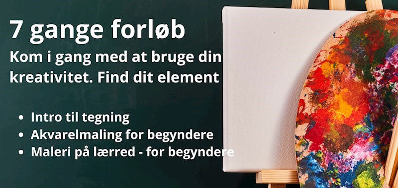 På dette kreative forløb kommer vi rundt om maleteknikker i akvarelmaling, tegneøvelser hvor du lærer at tegne lys og skygger også får du også en introduktion til maleri på lærred og du bliver kastet ud i kreative øvelser, hvor du finder frem til din kreative passion.